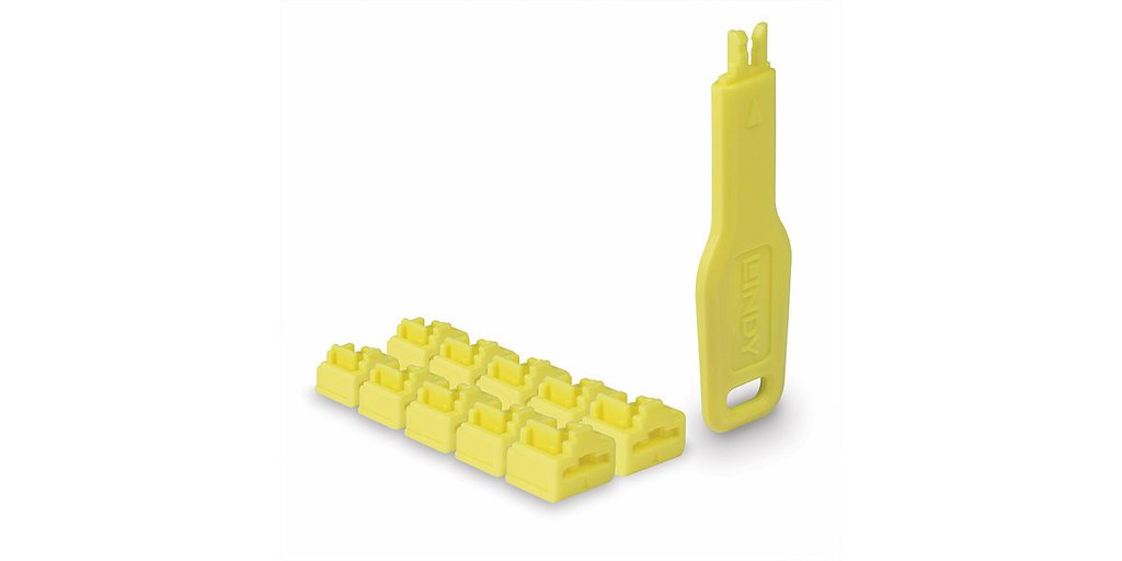 The Lindy RJ45 Port Locks Yellow, 10 pieces + 1 Key is an essential security kit tailored for safeguarding your network ports. This innovative product is designed to physically block unauthorized access to RJ45 network ports, providing peace of mind in both professional and public settings.