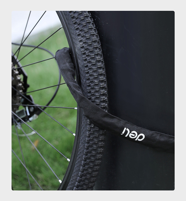 Κλειδαριά ποδηλάτου της Deli με ανθεκτική ατσάλινη αλυσίδα και πρακτικό μήκος, για την προστασία του ποδηλάτου σας από κλοπές.