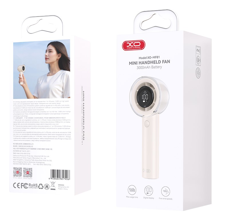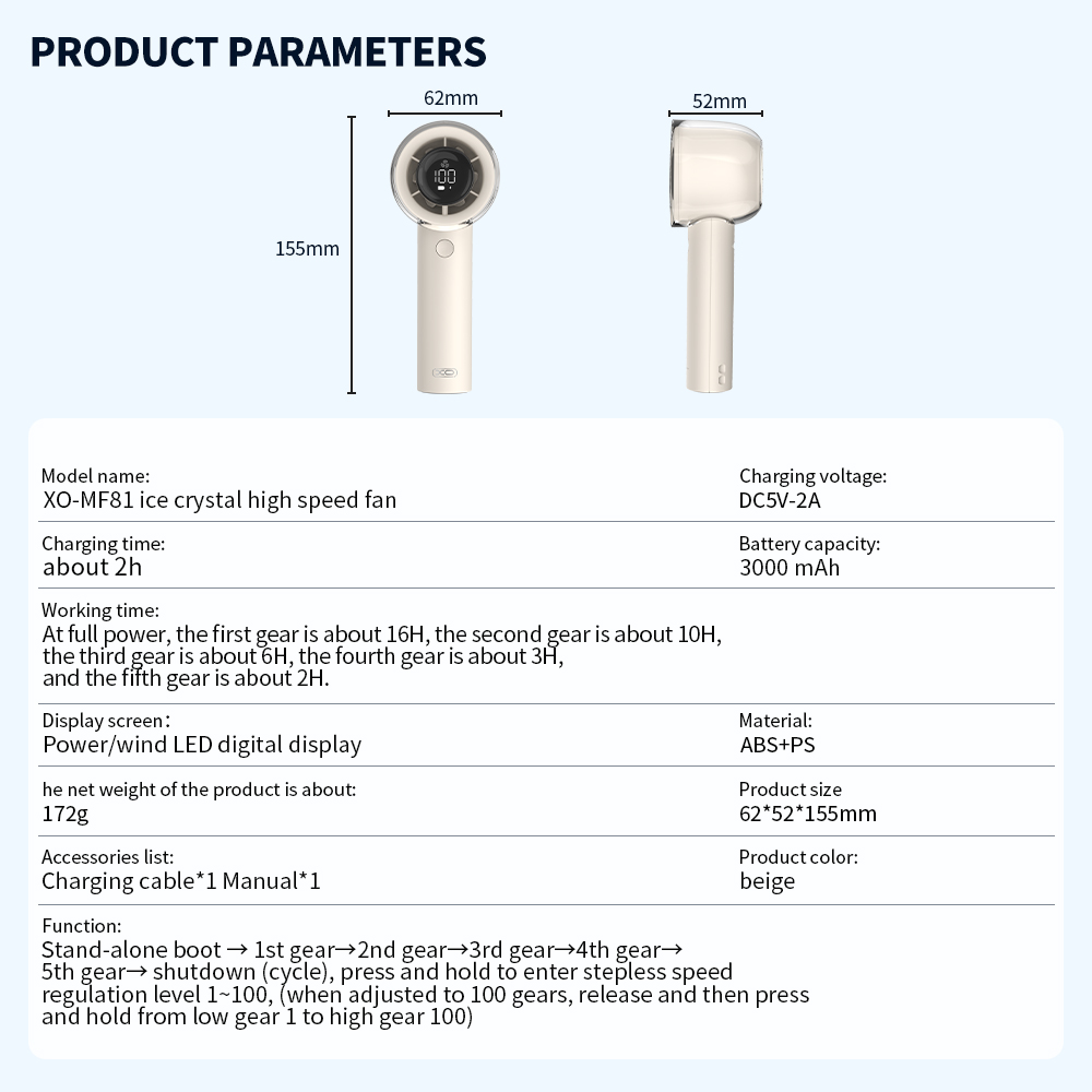 XO Adjustable Handheld Fan MF81 13000 RPM 3000 mAh