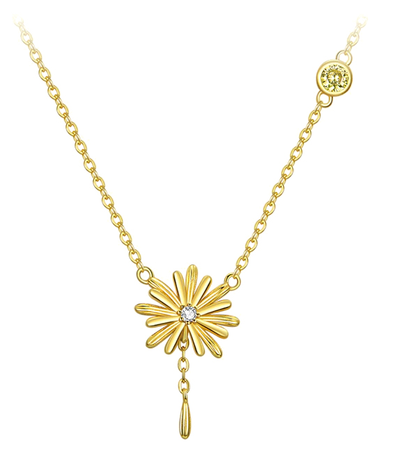 Kομψό κολιέ, με σχήμα λουλουδιού, διακοσμημένο με κυβική ζιρκόνια η οποία προσφέρει μοναδική λάμψη στο κόσμημα.