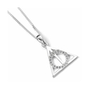 The Carat Shop Harry Potter – Sterling Silver Deathly Hallows Necklace with Crystals (BHPSN002) is a unique piece of jewelry inspired by the beloved Harry Potter series. This necklace features the iconic Deathly Hallows symbol, which combines the three most powerful magical objects in the Wizarding World.