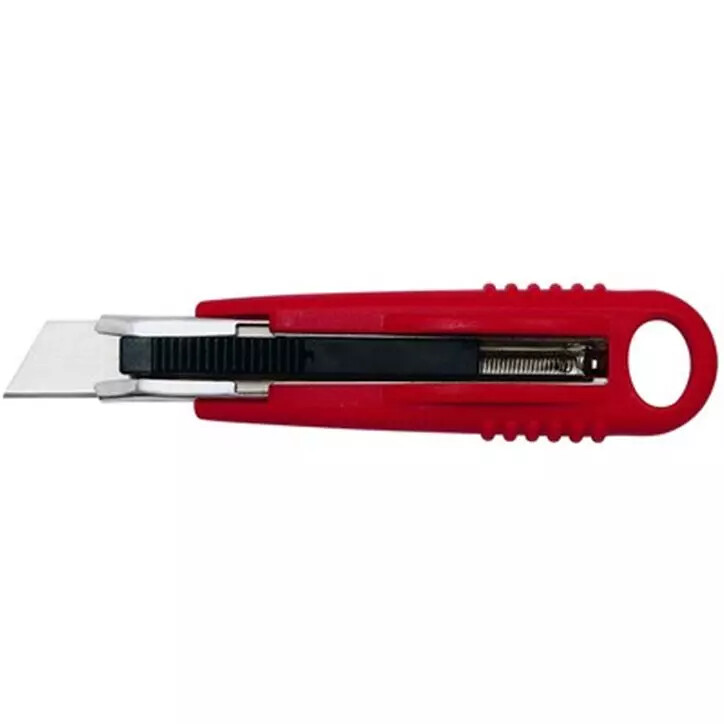 One of the key features of this safety-cutter is its retractable blade. It includes a robust metal blade guide and a spring-loaded trapezoid blade that retracts automatically, significantly enhancing overall safety. Additionally, the blade is reversible, making it accessible for left-handed users as well.