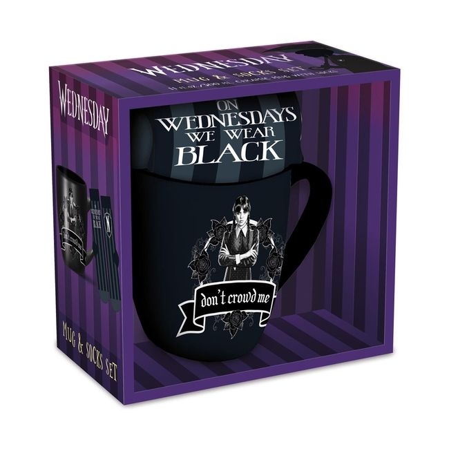 The Wednesday - Wear Black Mug & Socks Set is a unique and stylish gift set designed for fans of the popular TV series "Wednesday." This delightful combination features a high-quality ceramic mug and matching soft socks, perfect for anyone who loves the dark and mysterious world of the show.