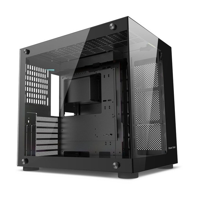 The Power Train GC361090B is a stylish mid-tower gaming PC case designed to provide the ideal foundation for enhancing your gaming experience. Crafted from 0.6mm thick baked black steel plate, it boasts tempered glass side panels that showcase the interior components beautifully.