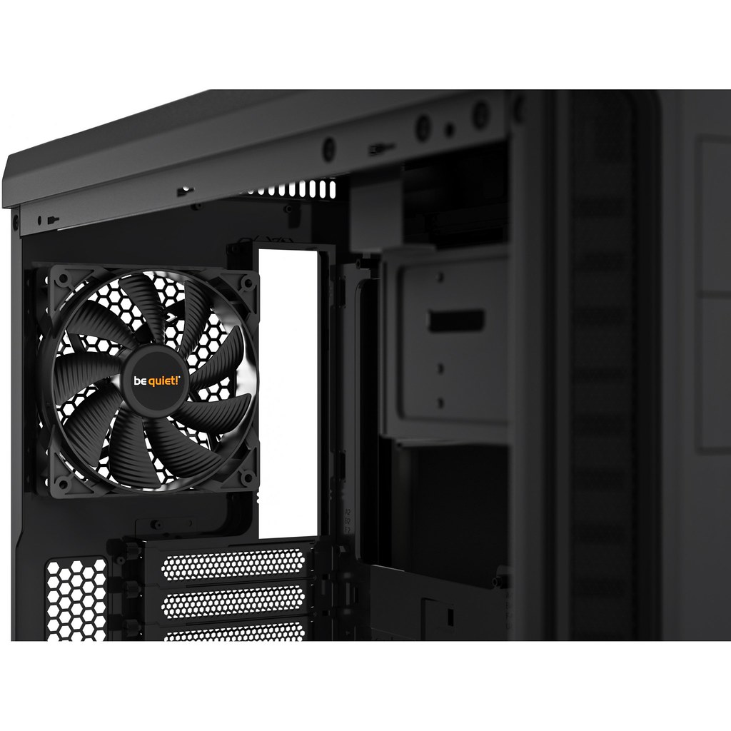 The be quiet! PURE BASE 600 Black Window is crafted for enthusiasts seeking silent operation coupled with versatile cooling options. It's designed in a sleek black finish, complemented by a tempered glass side window, showcasing the internal components beautifully.