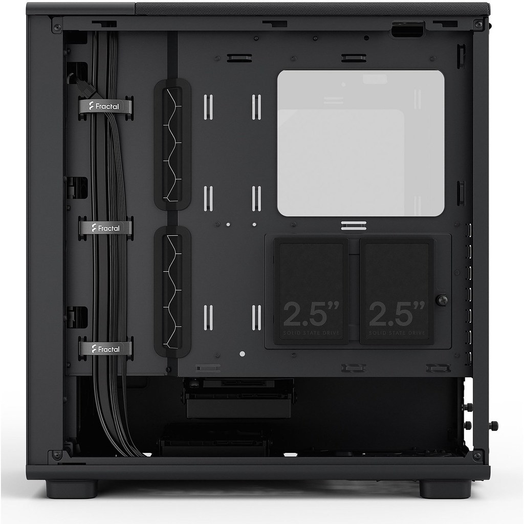 Featuring a sleek black finish and a light-tinted tempered glass side panel, it allows users to display their internal components while ensuring a minimalistic and elegant appearance.