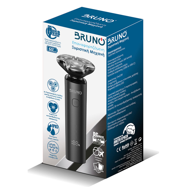 Η επαναφορτιζόμενη ξυριστική μηχανή προσώπου BRUNO BRN-0223, είναι η απόλυτη λύση για την καθημερινή περιποίηση του άνδρα.