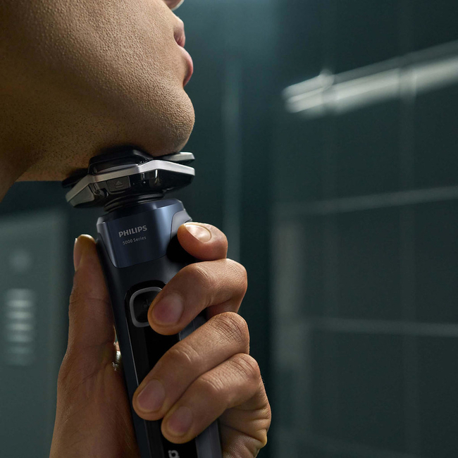 The Philips 5000 SkinIQ Shaver S5885/10 Navy is a premium wet & dry electric shaver designed for powerful, precise, and comfortable shaving. It features advanced SkinIQ technology that intelligently senses and adapts to the density of your beard 250 times per second, optimizing cutting power for a smooth, effortless shave with minimal skin irritation.