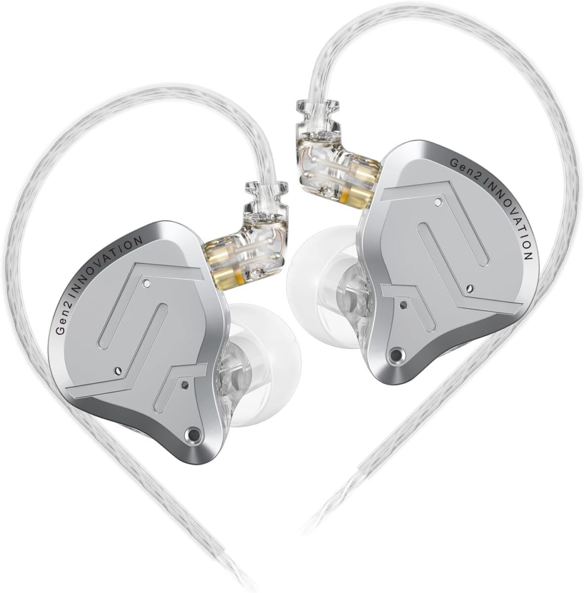 KZ In Ear Monitor Earphones ZSN Pro 2 Silver No Mic Hybrid 1BA 1DD 10mm