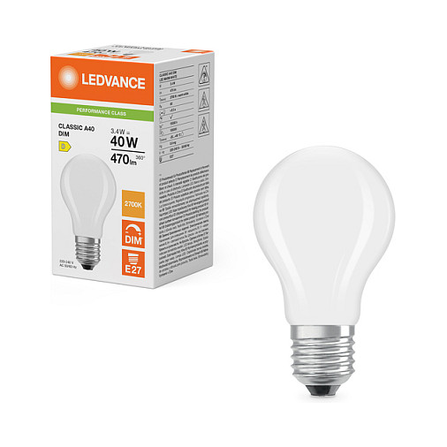 The Osram LED Classic A 40 Filament DIM P 3.4W 827 Frosted is a state-of-the-art LED lamp designed for efficiency and ambiance. With its unique filament style, this lamp mimics the classic incandescent bulb while providing significant energy savings.
