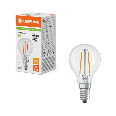 The Osram LED Classic P 25 Filament P 1.8W 827 Clear E14 LED lamp is a stylish and efficient lighting solution designed to enhance any space. With a power output of 1.8W, this LED bulb provides an equivalent brightness to a traditional 25W incandescent bulb, making it an ideal choice for eco-conscious consumers.