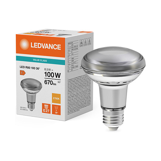 The Osram R8010036, also known as LEDVANCE LED R8010036, is an energy-efficient choice for illumination. This 8.5W LED reflector lamp (R80 shape) features an E27 base, making it compatible with most fixtures.