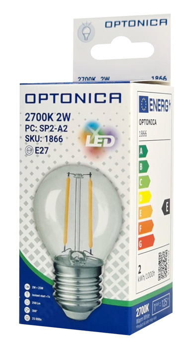 OPTONICA LED λάμπα G45 1866, Filament, 2W, 2700K, 200lm, E27