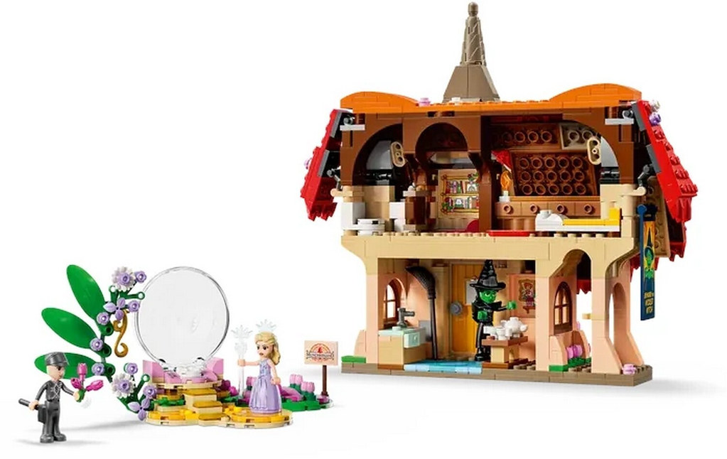 Each room is furnished with accessories like sinks and toilets, fostering creative storytelling. The set includes three LEGO mini-dolls: Elphaba, Glinda, and Boq, enabling the recreation of pivotal moments in the story.