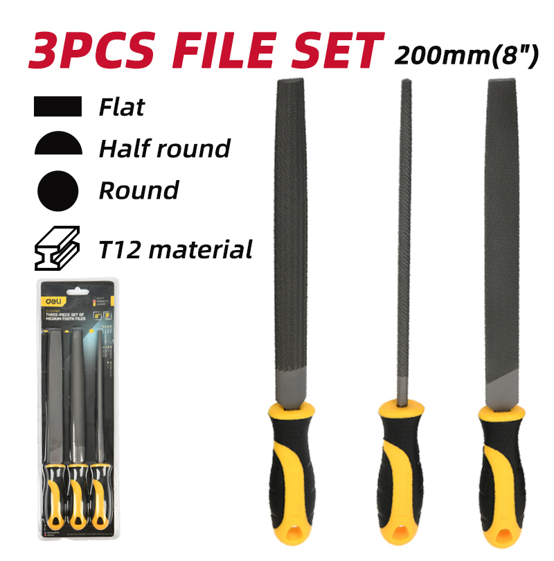 DELI σετ λίμες DL75108 με αντιολισθητική λαβή, μετάλλου, 200mm, 3τμχ