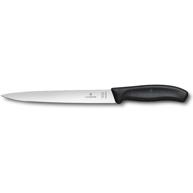 The Victorinox Swiss Classic Filleting Knife (model 6.87 13.20B) is a precision kitchen tool designed for fish filleting and delicate meat cuts. Its flexible stainless steel blade of 20 cm (approximately 8 inches) ensures you can slice close to bones and skin, yielding clean and precise fillets.