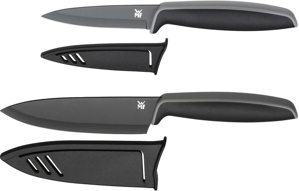 The WMF Kitchen Knives Black Touch 2-piece set features two essential knives for any kitchen. These knives are designed with durability and modern aesthetics in mind.