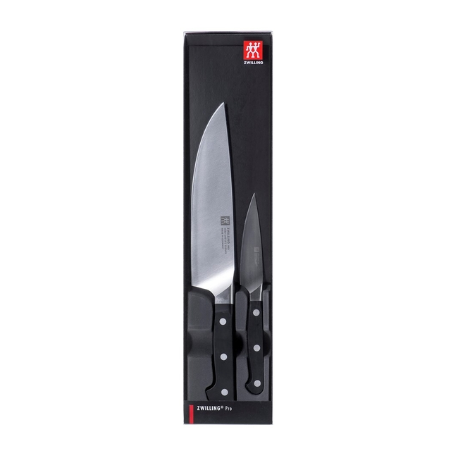 The Zwilling Pro 38430-004-0 knife set includes two essential kitchen tools: a chef's knife and a paring knife. Each knife is masterfully crafted to provide exceptional cutting performance.