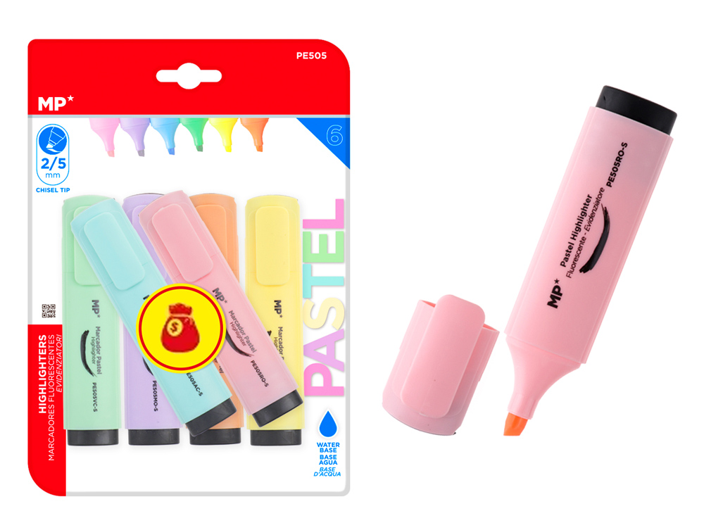 MP σετ μαρκαδόροι υπογράμμισης PE505, πάχος μύτης 2-5mm, διάφορα χρώματα, 6τμχ
