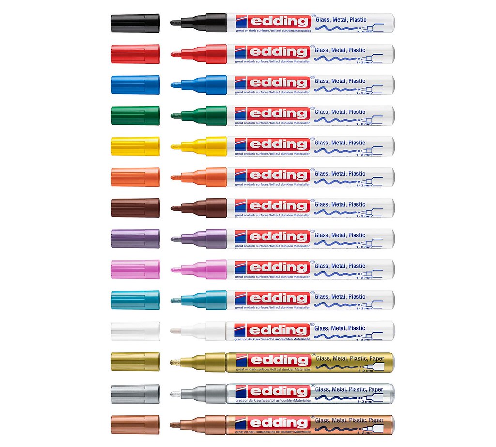 This marker is part of the acclaimed Edding 751 series, which is renowned for its highly opaque and permanent ink. This feature makes it suitable for use on both dark and transparent surfaces.