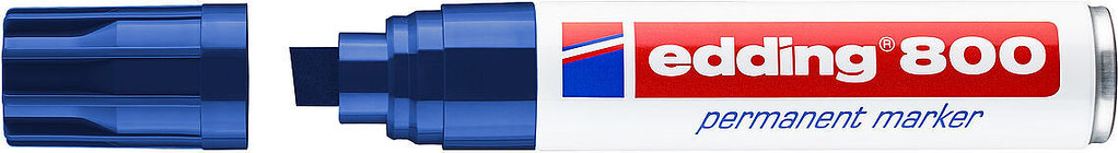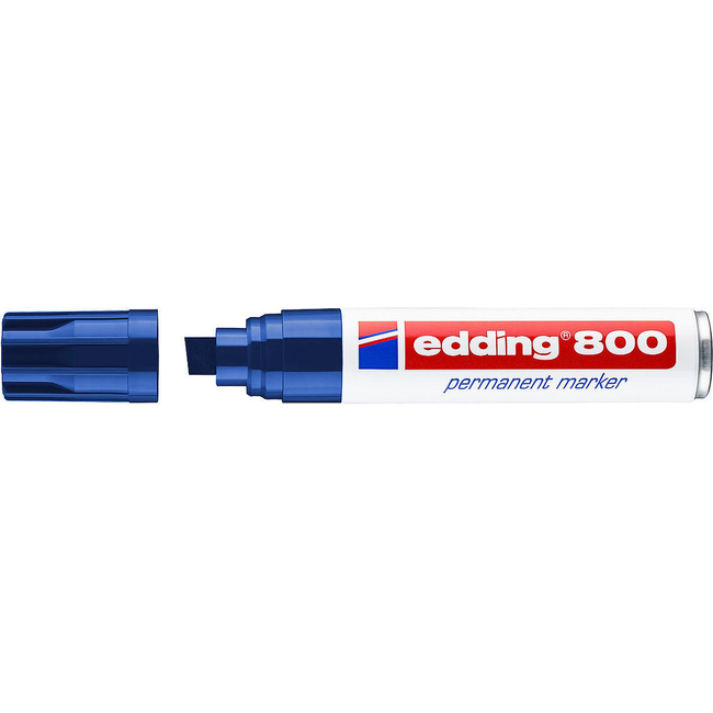 The Edding 800 Permanent Marker is a robust, versatile tool designed for broad marking and labeling needs. This marker features a chisel tip, offering a wide stroke width of 4-12 mm, making it ideal for both fine and very broad markings.