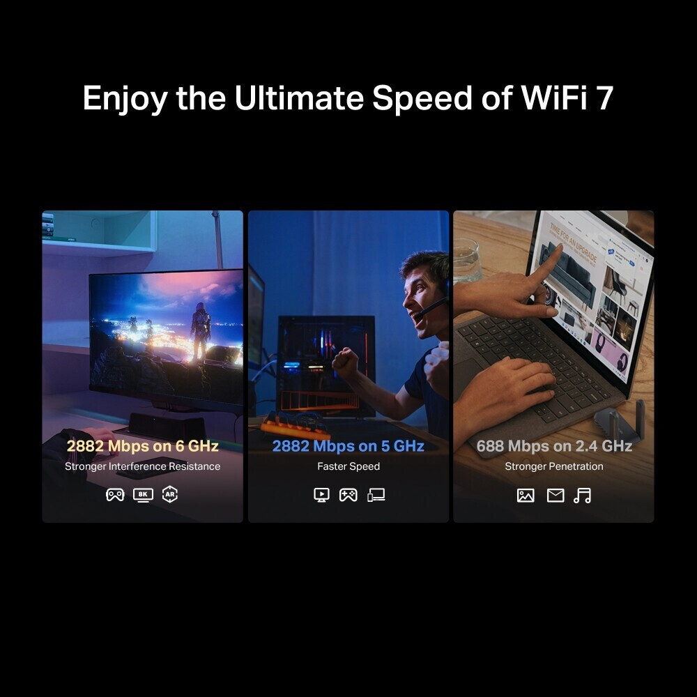Maximum Wireless Speed2882 Mbps (6 GHz), 2882 Mbps (5 GHz), 688 Mbps (2.4 GHz)
