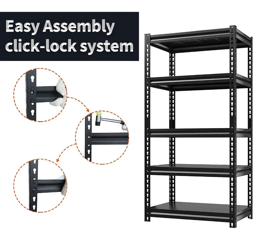 Μεταλλική Ραφιέρα Home Use HUH-0248 με 5 Ράφια, 90X40X183Cm, Μαύρη