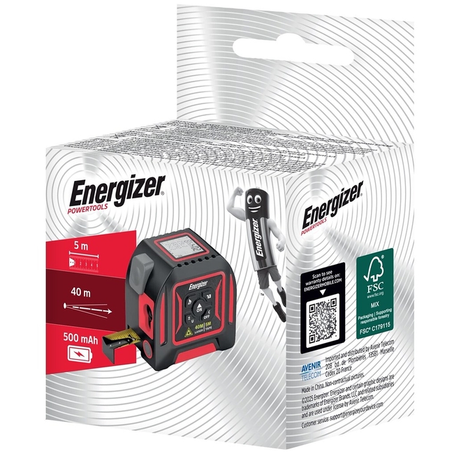 The Energizer 3MT40 is a sophisticated laser distance measurer designed for precision and ease of use. This device is equipped with an LCD display that guarantees clear visibility of the readings.