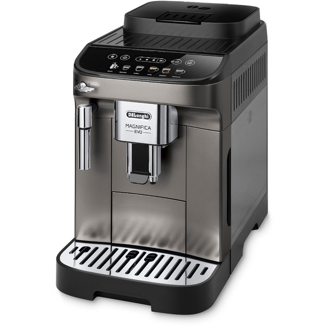 The De'Longhi Magnifica Evo ECAM 290.42.TB is a fully automatic espresso machine that offers barista-quality coffee effortlessly. Its stylish titanium and black exterior complements any modern kitchen.