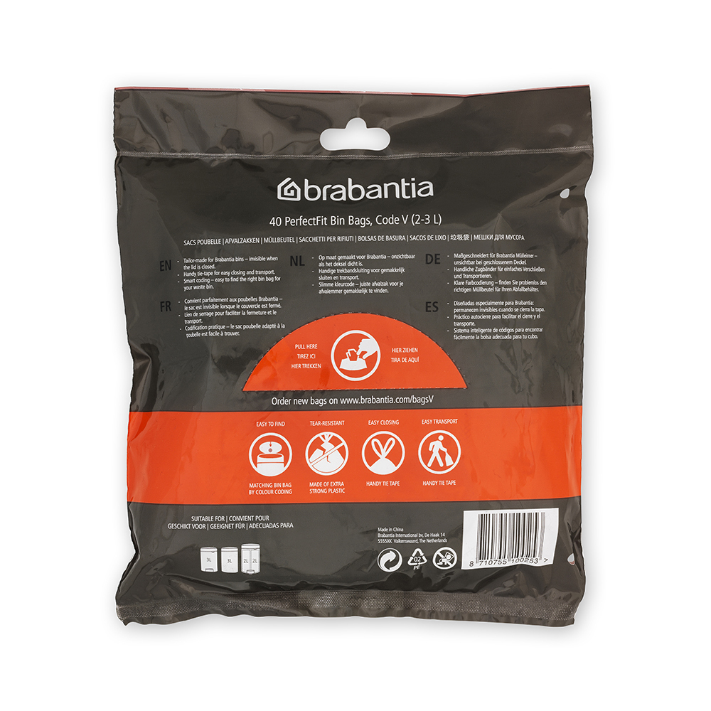 Brabantia Σακούλες απορριμμάτων & φίλτρα οσμών PerfectFit Trash Bag NewIcon, Code V (3 Liter)