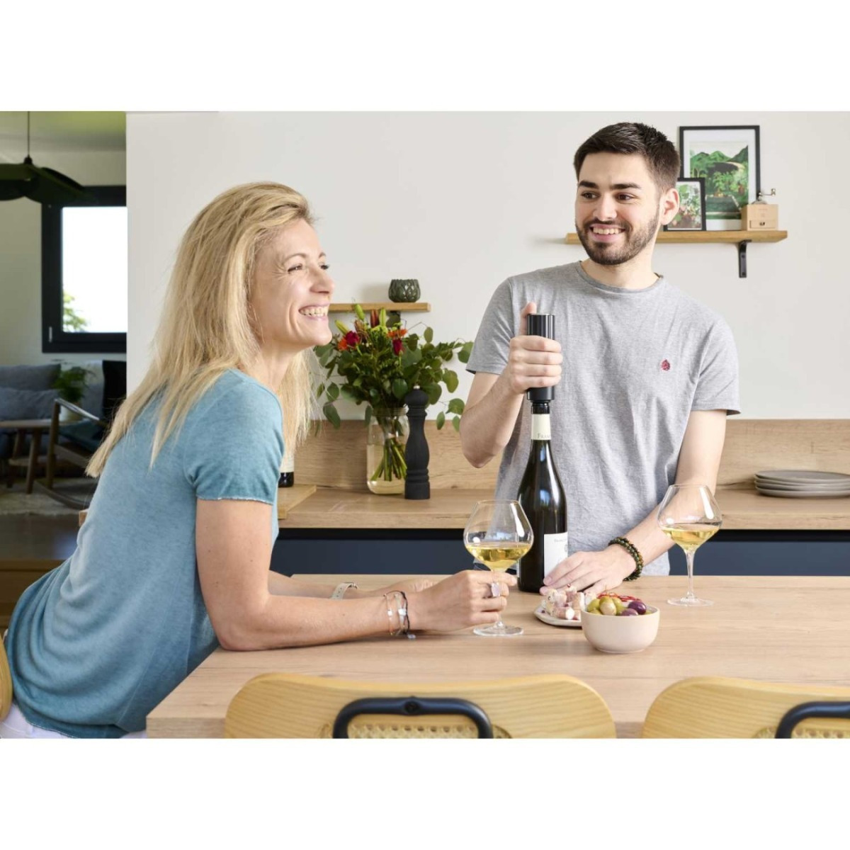 Αξεσουάρ μπαρ & κρασιού Peugeot ηλεκτρική αντλία κενού κρασιού PRESERVE 14 cm ABS μαύρη με 2 πώματα