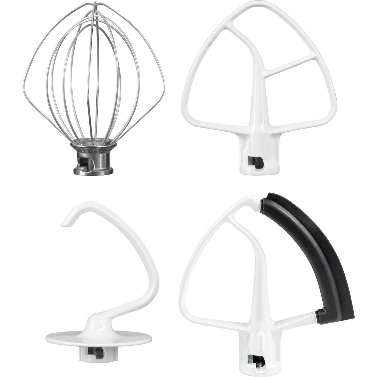 Included AccessoriesFlat beater, Flex Edge Beater, dough hook, 6-wire whisk, pouring shield, 2 stainless steel bowls