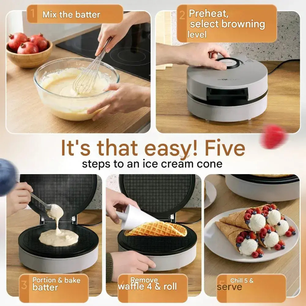 Use CaseMakes moldable cones for ice cream, fruit, sweets