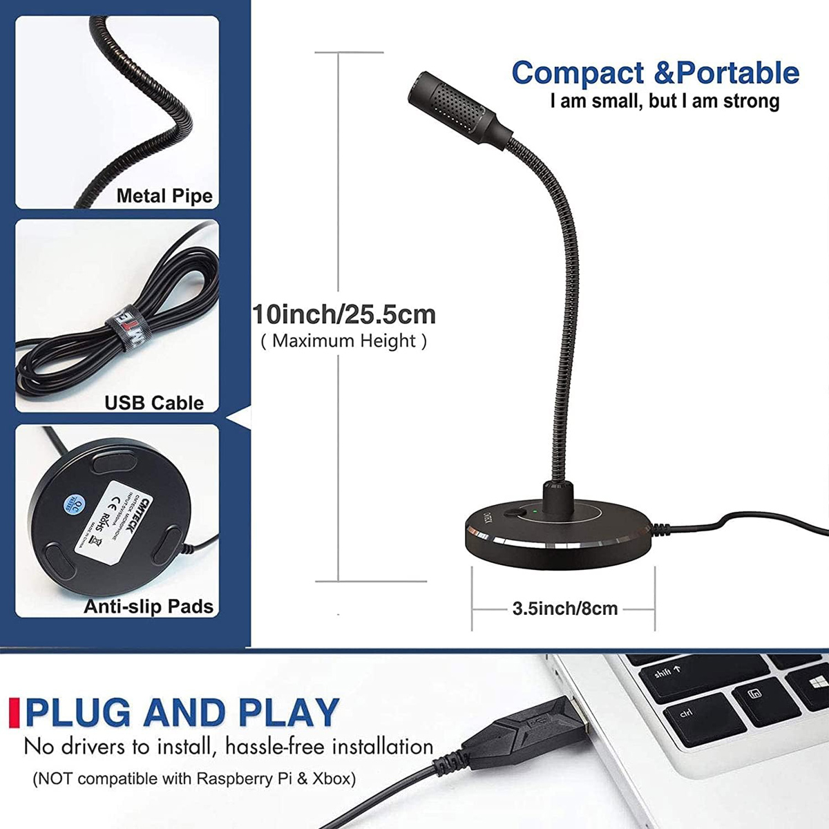 CMTECK επιτραπέζιο μικρόφωνο G009 με εύκαμπτο βραχίονα, omnidirectional, USB, μαύρο