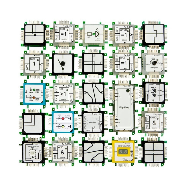 Additionally, the set is accompanied by a didactically sequenced booklet that provides step-by-step examples and explanations of digital circuit technology, making learning straightforward and enjoyable.