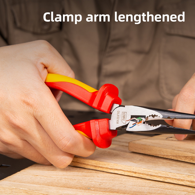 Μυτοτσίμπιδο ίσιο ηλεκτρολόγου της Deli σχεδιασμένο για ασφαλή και αποδοτική εργασία σε ηλεκτρικές εγκαταστάσεις.