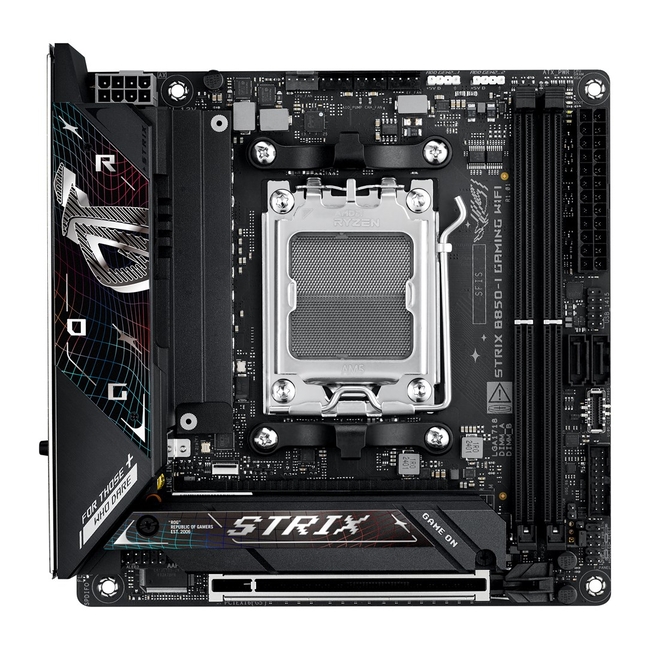 The ASUS ROG STRIX B850-I GAMING WIFI is a powerful mini-ITX motherboard tailored for gaming enthusiasts and professionals requiring top-notch performance. With its AMD B850 chipset, it seamlessly supports the latest AMD Ryzen 9000, 8000, and 7000 Series Desktop Processors through the advanced AM5 socket.