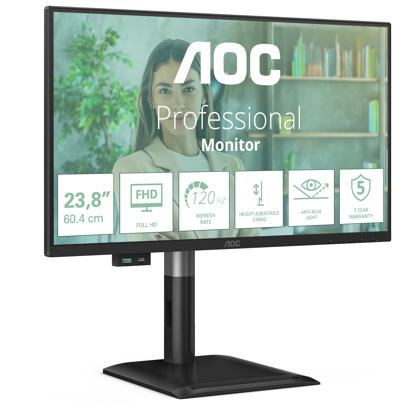 The AOC 24P4U is an exceptional 23.8-inch Full HD IPS monitor, perfect for both home and office settings. Its sleek design blends seamlessly into any environment, providing a professional aesthetic.