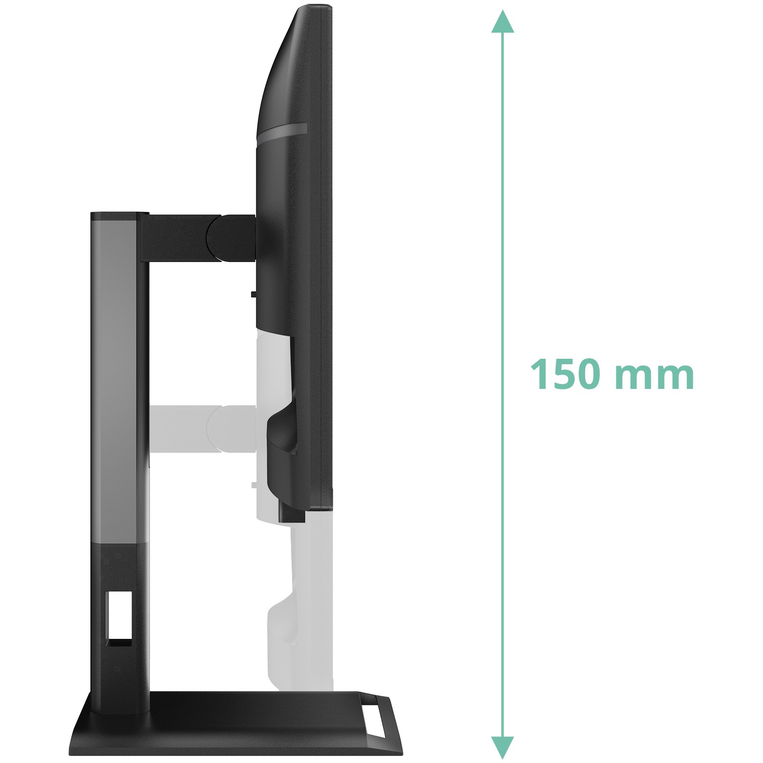 Connectivity options are plentiful, featuring HDMI, DisplayPort, and a built-in USB 3.2 hub with four ports, including USB-C for versatile data transfer and charging. Ergonomically, the monitor’s height-adjustable stand accommodates various viewing preferences, ensuring comfort.