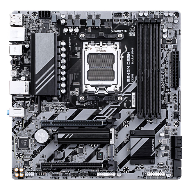 The GIGABYTE B840M DS3H is a high-performance motherboard tailored for AMD Ryzen 9000, 8000, and 7000 Series Processors. With the latest AMD Socket AM5, it ensures compatibility with cutting-edge CPU technologies.