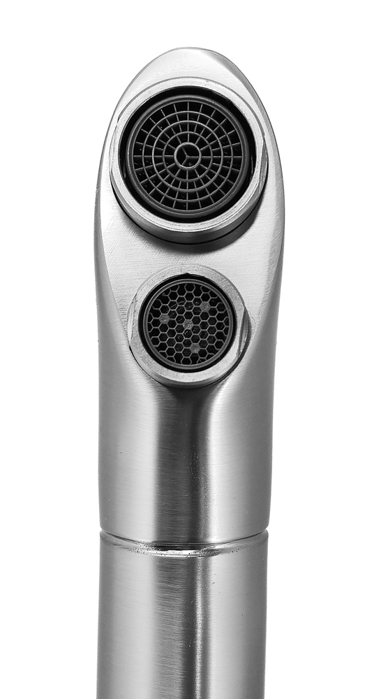 Αυτή η μπαταρία πάγκου κουζίνας διαθέτει τρίοδο σχεδιασμό για τη σύνδεση με φίλτρο νερού και το δίκτυο παροχής ζεστού και κρύου νερού. Έτσι, μπορείτε να απολαμβάνετε καθαρό, φιλτραρισμένο νερό και να επιλέξετε παράλληλα ανάμεσα σε ζεστό και κρύο νερό με τους διακόπτες.