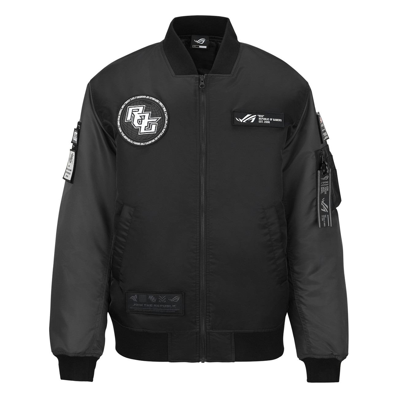 One of the standout aspects of this jacket is its interchangeable ROG pattern labels located on the front and sleeves, allowing you to customize your style. Additionally, the large ROG planet logo on the back makes a bold statement, showcasing your gaming passion.