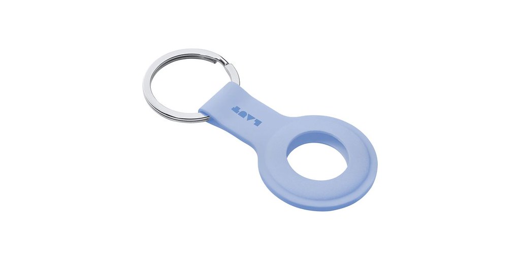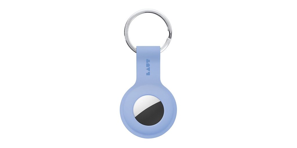 The Laut HUEX TAG Powder Blue is a protective silicone keychain case designed specifically for the Apple AirTag.