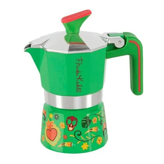 The Pedrini 1TZ FRIDA KAHLO, gr?n, is a beautifully designed moka pot that captures the essence of Italian craftsmanship and the artistic spirit of Frida Kahlo.