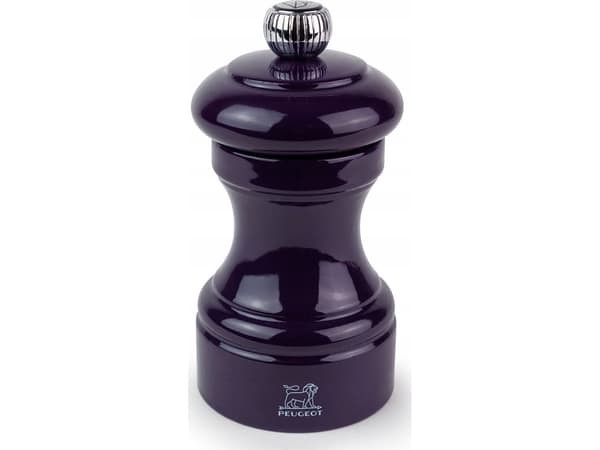 The Peugeot Bistro pepper mill, model 42630P04, is a 10 cm tall manual pepper grinder made from eggplant (aubergine) lacquered wood. This exquisite piece is part of Peugeot's Bistro collection and boasts a shiny lacquered surface with a rich purple finish, making it a perfect fit for modern kitchen aesthetics.