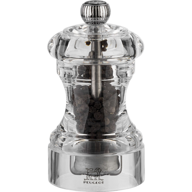 The Peugeot Bistro pepper mill, 10 cm, acryl transparent is an elegant and functional addition to your kitchen. Its transparent acrylic body not only looks great but also allows you to easily see the peppercorns inside. This grinder is known for its quality and precision, making it an essential tool for culinary enthusiasts.