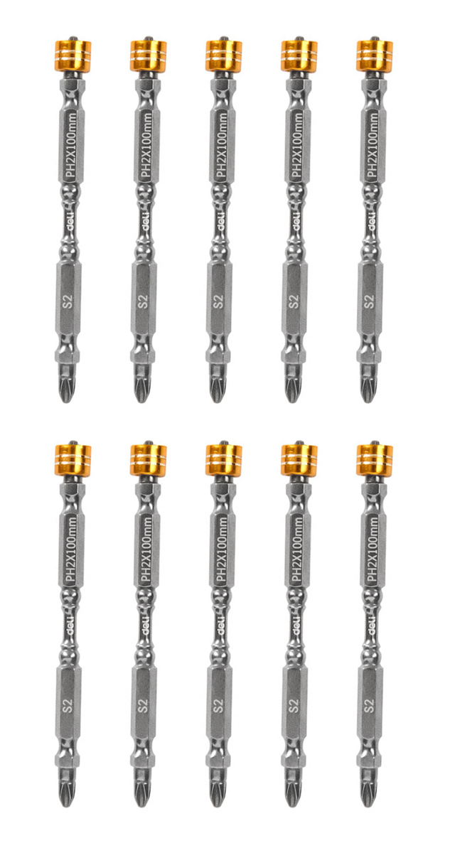Μύτες Κατσαβιδιού Deli Dl255100 για Δραπανοκατσάβιδο, Διπλή Ph2X100Mm, με Μαγνητικό Ring, 10Τμχ
