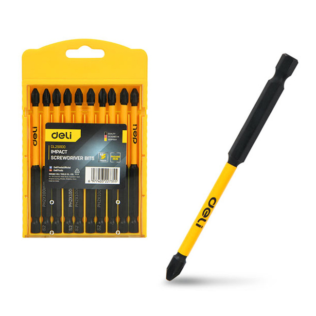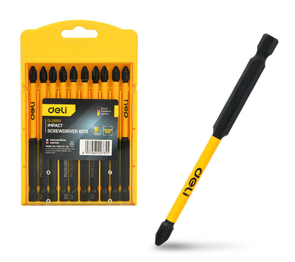 DELI σετ μύτες κατσαβιδιού DL251100 για δράπανο, σταυρωτές, PH2x100mm, 10τμχ