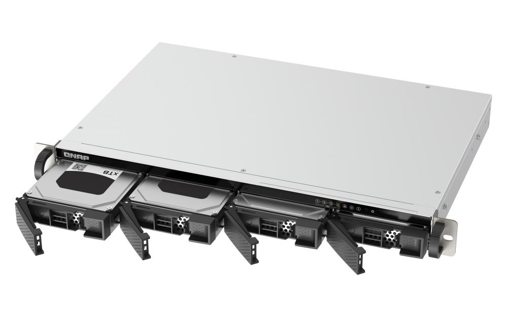 The QNAP TS-433eU is a versatile 1U NAS storage tower designed to fit seamlessly into any small business or home office environment. With its compact rack-mountable design, this device offers an efficient storage solution with four bays for 3.5-inch or 2.5-inch SATA HDDs or SSDs.