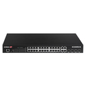 - 24 x 10/100/1000 Mbps PoE+ RJ45 ports, 4 x Gigabit RJ45/SFP combo ports